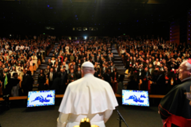 Tôi xin gửi lời chào thân ái và biết ơn từng người trong số qúi vị đã chấp nhận lời mời của Đức Hồng Y Aveline tham gia vào các cuộc gặp gỡ này. Cảm ơn Đức Hồng Y vì công việc của ngài và những suy tư có giá trị mà ngài đã chia sẻ. Sau Bari và Florence, hành trình phục vụ các dân tộc Địa Trung Hải đang tiến về phía trước: cũng tại đây, các nhà lãnh đạo Giáo hội và dân sự tụ tập không phải để giải quyết các lợi ích chung, nhưng được thúc đẩy bởi ước muốn chăm sóc mọi người nam nữ. Cảm ơn các quí vị đã lôi kéo giới trẻ, những người là hiện tại và tương lai của Giáo hội và xã hội.